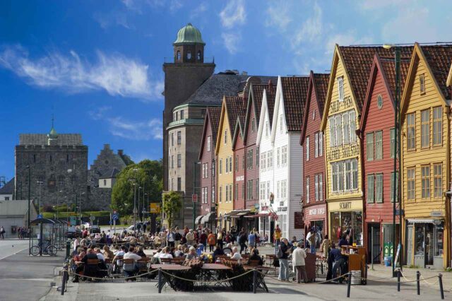 Staré skladiště v historickém městě Bryggen, přístavní čtvrti, je jedním z nejstarších přístavních měst severní Evropy. Oblast se vyvinula jako obchodní centrum ve 12. století, kdy byl Bergen hlavním vývozním přístavem pro sušené ryby a rybí tuk. Hanzovní liga ji převzala v roce 1350 a fakticky se oddělila od hlavního města.