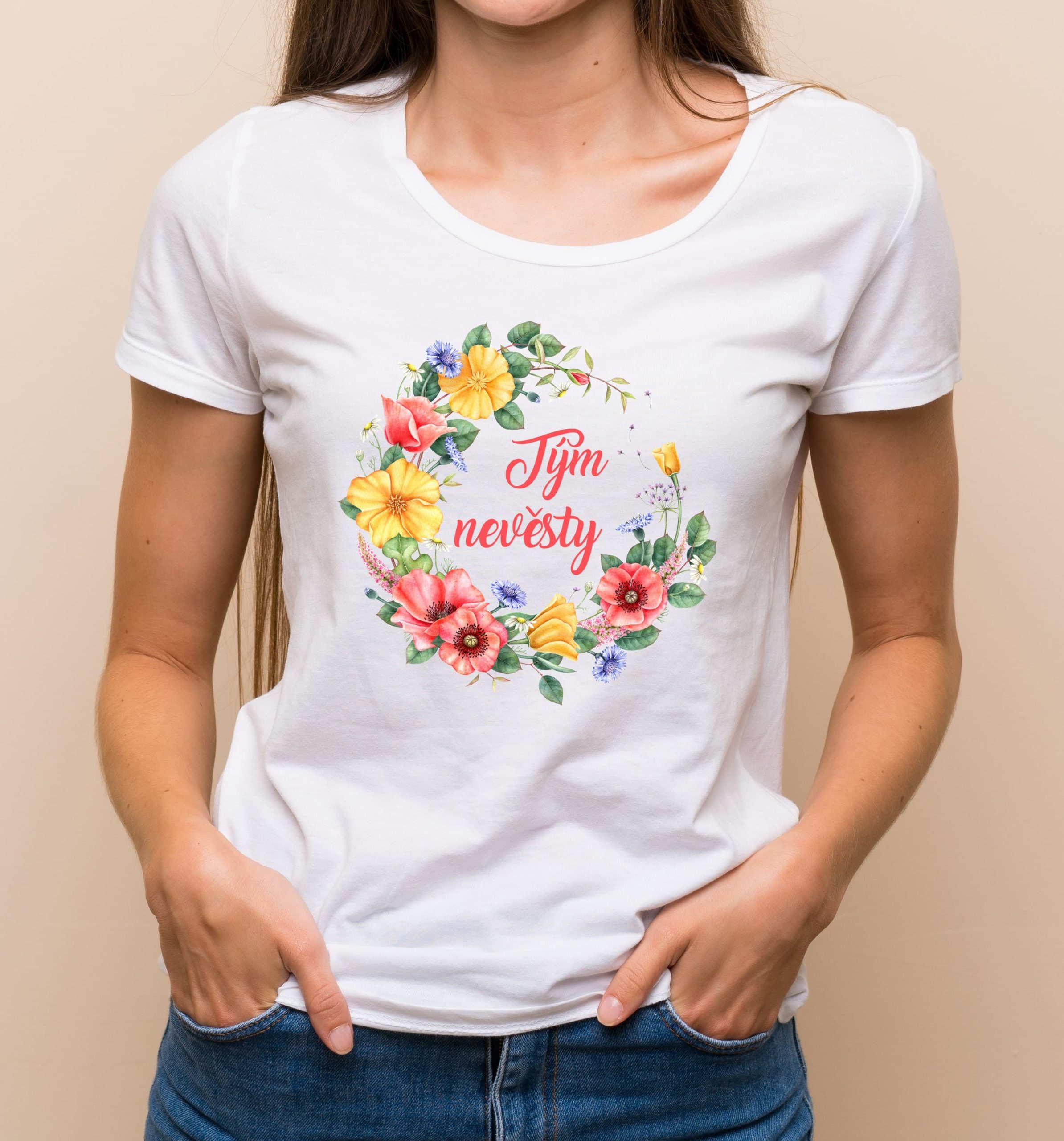 Specifikace trička Barva trička: bílá Barva potisku: plnobarevný tisk s motivem vlčích máků Typ potisku: Tým nevěsty Tričko v této specifikaci je připraveno k okamžitému odeslání. Při objednání do 11:00 a platbě na dobírku je tričko doručeno do druhého dne. Trička střední gramáže 150 g/m 2 jsou složena ze 100%25 bavlny, materiálu Single Jersey se silikonovou úpravou a jsou tak velice pohodlné na nošení. Mají lehce vypasovaný střih s bočními švy. Péče o textil s potiskem Toto tričko je tisknuté metodou digitálního tisku, která zaručuje stálost tisku i při dlouhodobém používání. K zachování stálosti tisku je však nutné dodržovat následující pravidla: Prát naruby bez aviváže, maximálně 30 stupňů Celsia, textil nesušte v sušičce. Velikostní tabulka dámského trička Velikost triček naleznete v této tabulce. Číselné hodnoty jsou uvedené v centimetrech a výrobce garantuje tyto velikosti s 5%25 odchylkou.
